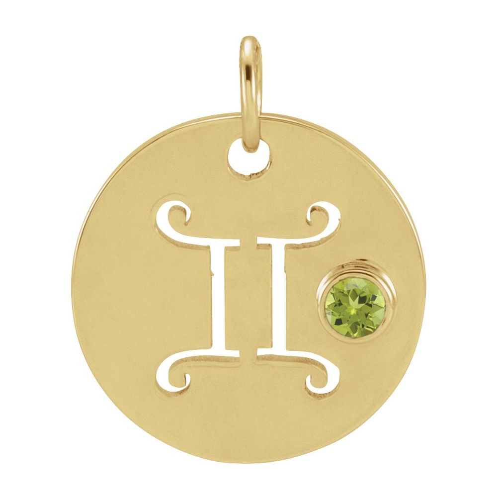 Gemini Zodiac Disc Necklace with Natural Peridot in 14K Gold