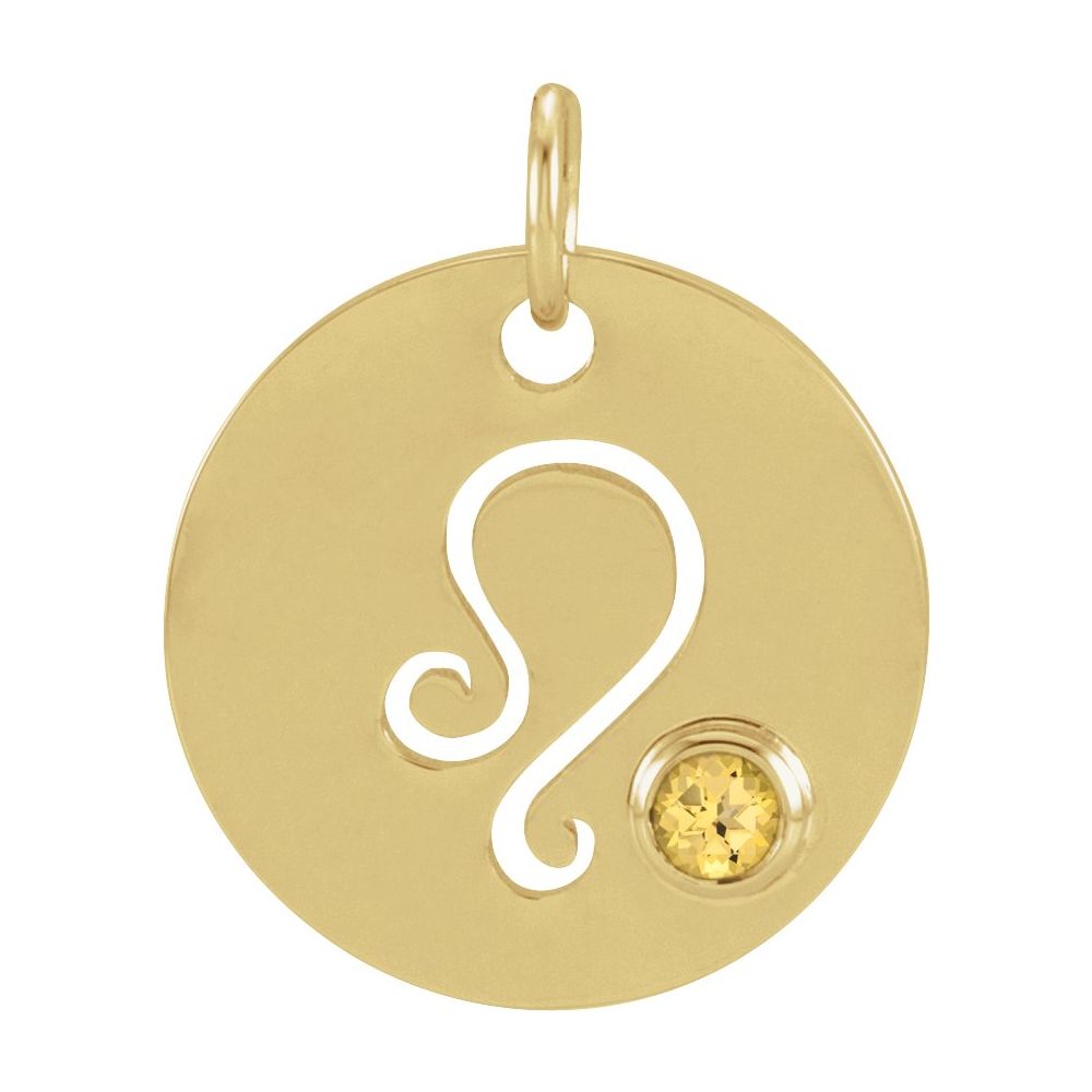 Leo Zodiac Disc Necklace with Natural Citrine in 14K Gold